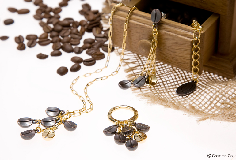 ゴールドブレンドコーヒー ピアス 9,000円+税 / ネックレス 16,000円+税 / リング 16,000円+税