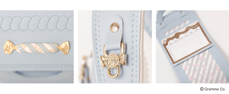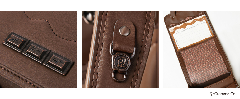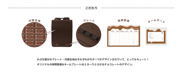 かぶせ部分はメルトの刺繍に、チョコレートのプレート付き。