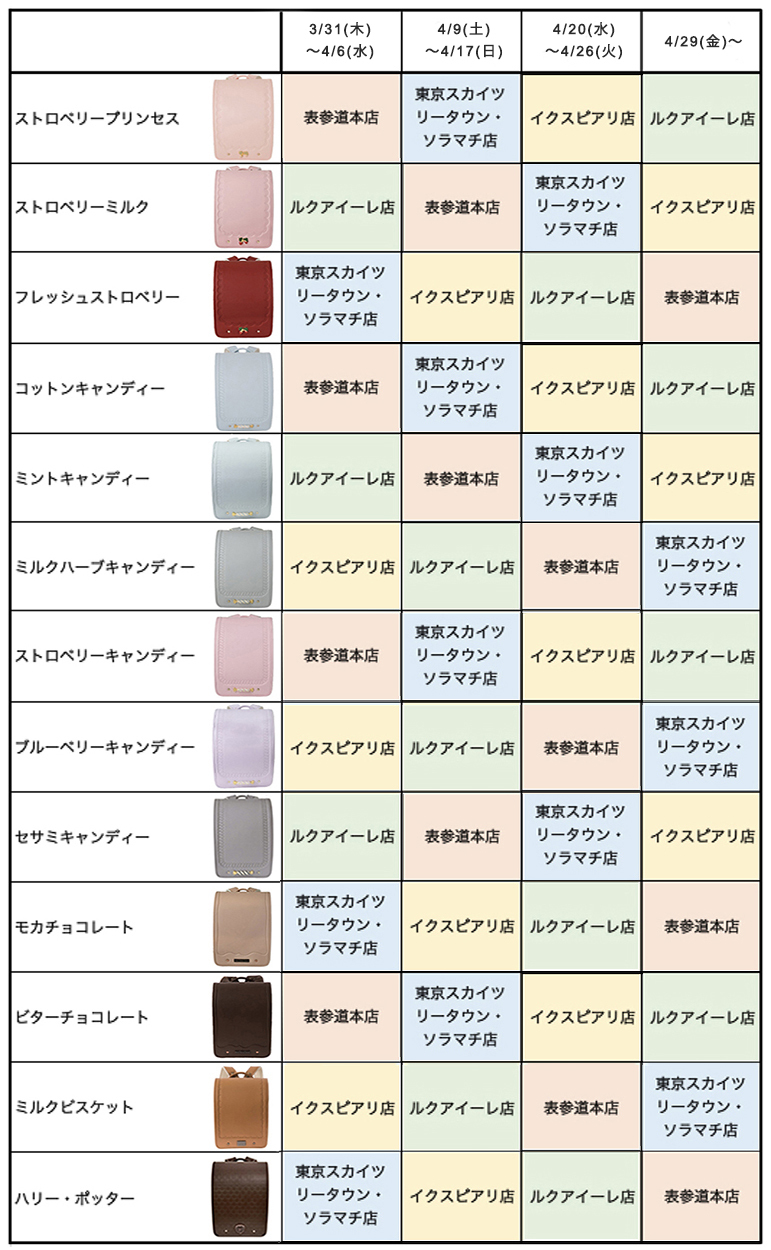 ハリー・ポッターランドセルの展示は4月5日(火)15時までとさせていただきます。