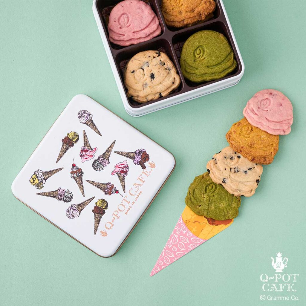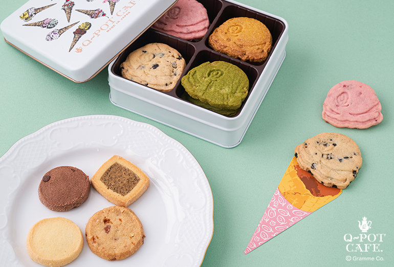 「Q」のロゴが入ったアイスクリーム型のクッキー入り!
