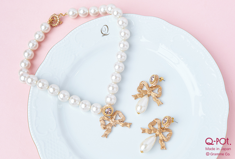 大振りなリボンと涙型のドロップパールを紡いだ