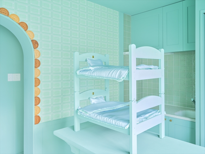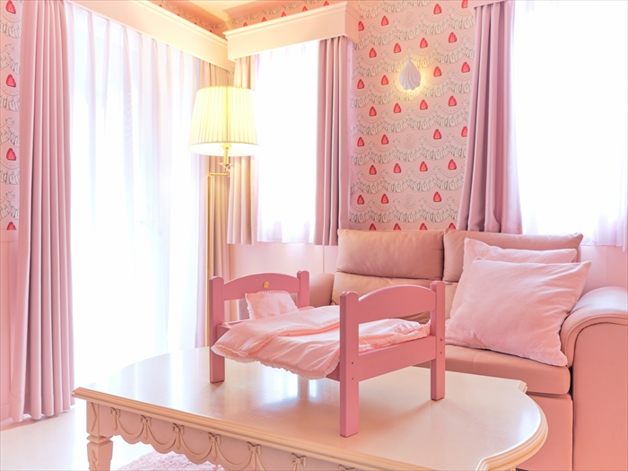ケーキをイメージしたストロベリー&ホイップクリームの壁紙やルームライトが