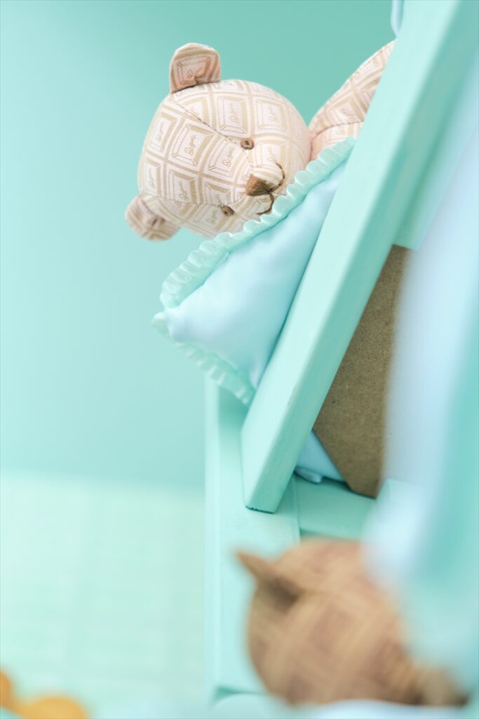 ぬいぐるみサイズのシーツやお布団、枕までご用意。