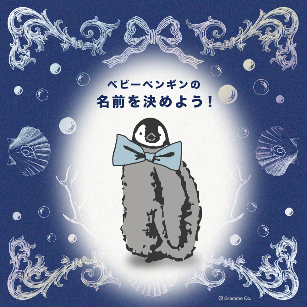 愛らしいベビーペンギンは、空色の蝶ネクタイでおめかし。