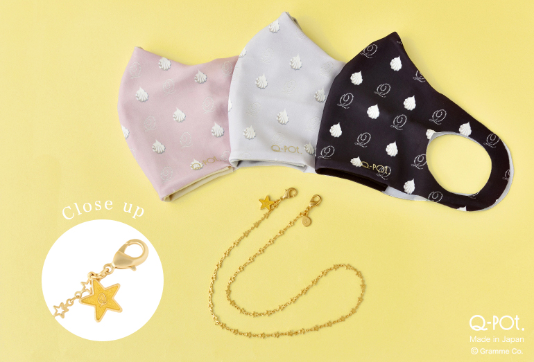 マスクチェーンは、“Q”のロゴ入りのスターチャーム付き。
