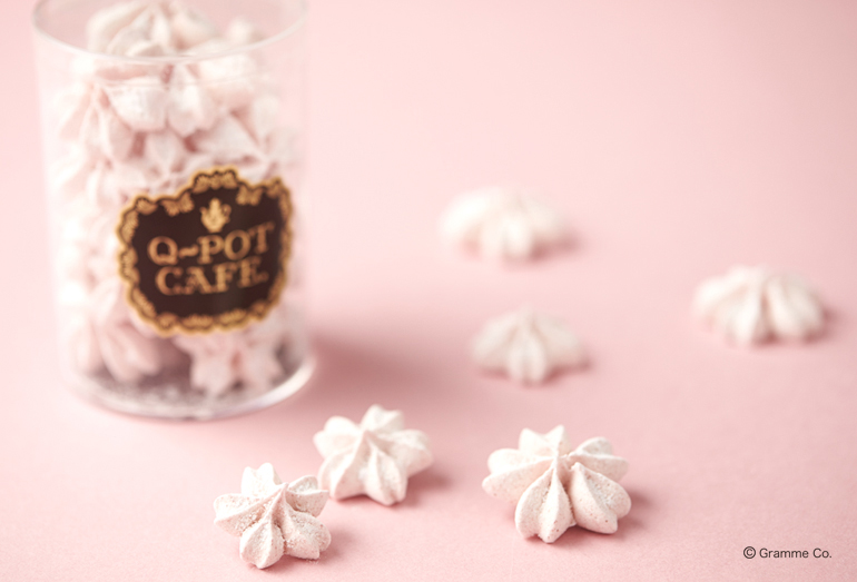 サクサク食感とまろやかな口どけがくせになるサクラ型のメレンゲは、スウィートな春を感じさせる
