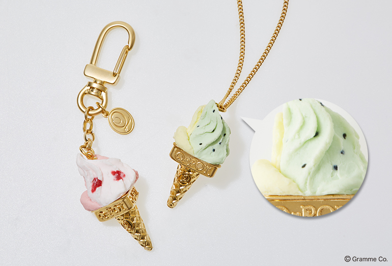 キーホルダー 各8,000円+税 / ジェラートネックレス 各8,300円+税