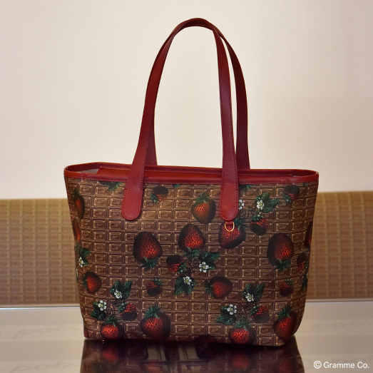 深みと艶のあるビターチョコレートに真っ赤な苺がトッピングされた、