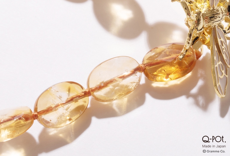 一粒一粒異なるシトリンの模様は、天然石ならではのナチュラルな美しさ。