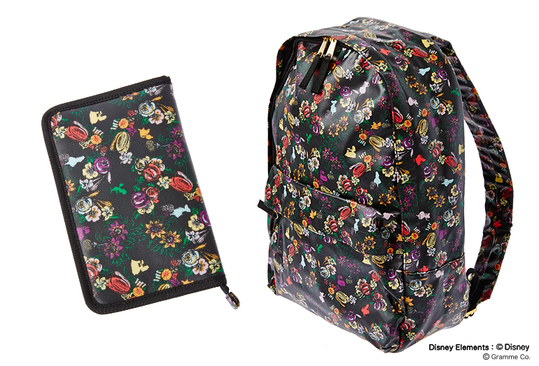 物語の中でアリスが出会う“チシャ猫”や“マッドハッター”、“白うさぎ”が描かれたバッグやポーチは