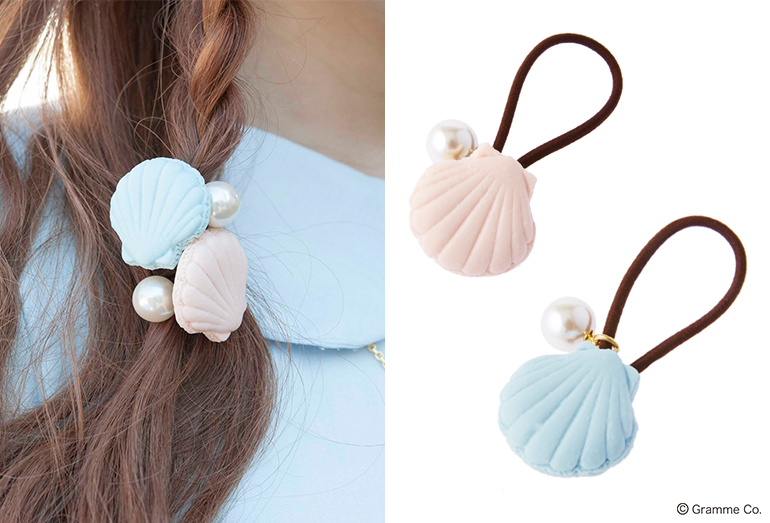 柔らかなパステルカラーのシェルでまとめてヘアアレンジ。