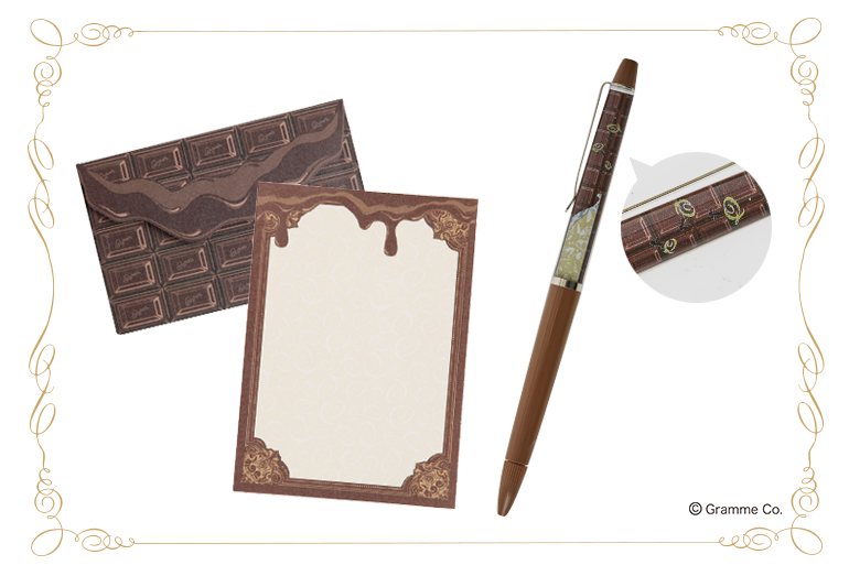 チョコレートフローティングペン 1,000円+税 / スウィートチョコレート レターセット 1,300円+税