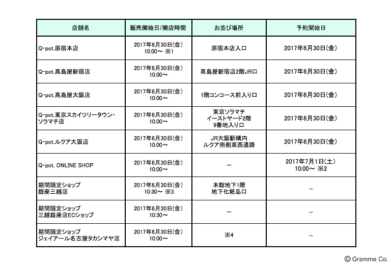 ※2.Q-pot. ONLINE SHOPでは7月1日(土)午前10時から完売商品のご予約を開始いたします。