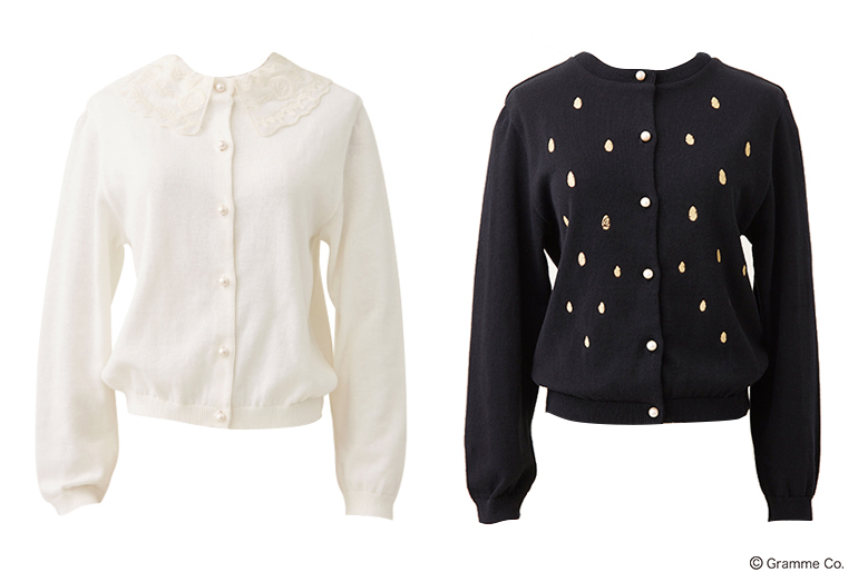 左・メルティーレースカラー カーディガン(アイボリー) 25,500円+税