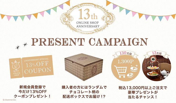 Q-pot. ONLINE SHOPでは13th Anniversaryをお祝いして