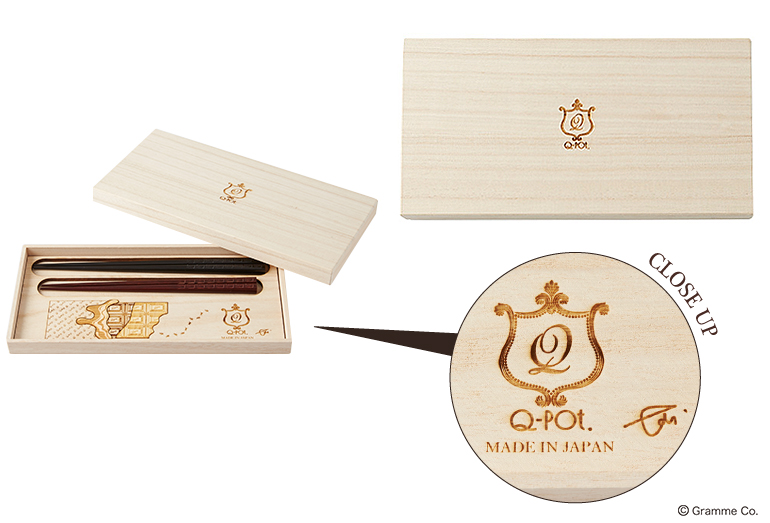 滑らかで美しい桐箱にはクラシカルなロゴを刻印。