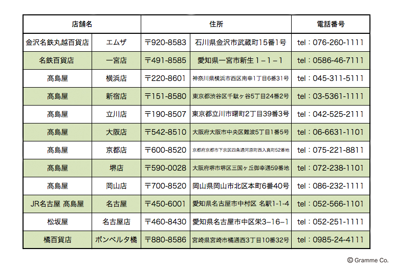 ※各百貨店の販売状況につきましては株式会社加藤忠(販売元)までお願い致します。
