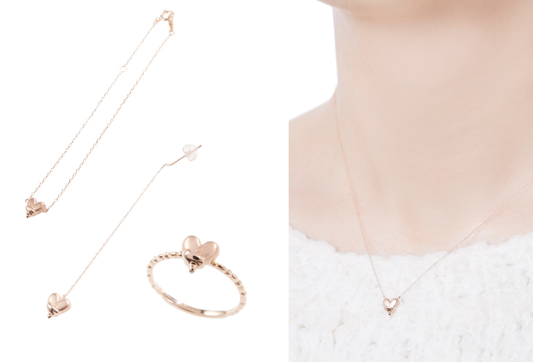 ピンクゴールドが優しく可憐な印象を与えてくれる“メルティーハート”シリーズ。