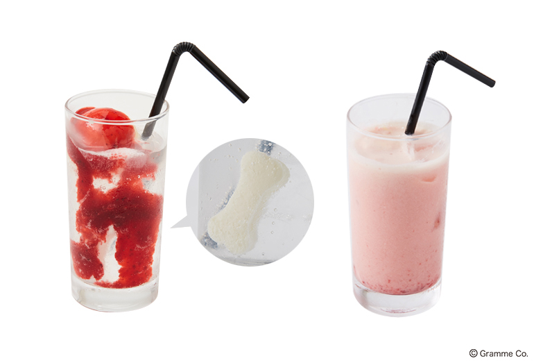 恋するドクロちゃんのボーンゼリーがゆらゆら揺れるドリンクを、