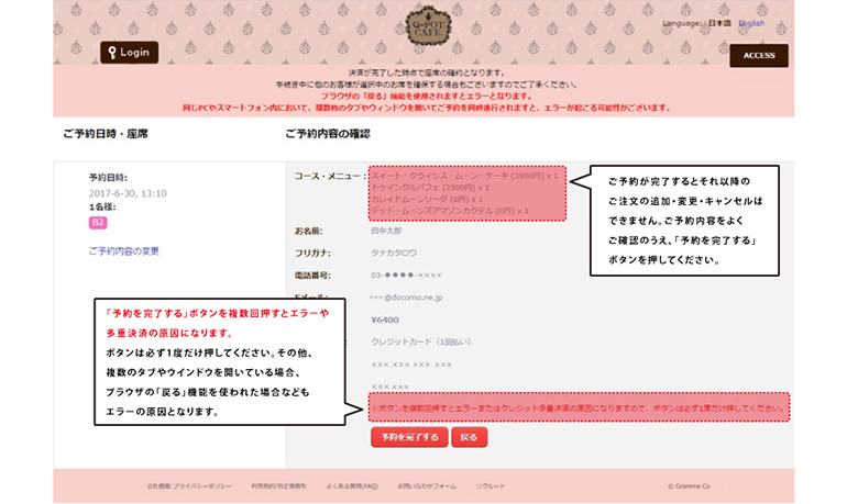 上記の理由によりご予約が正しく完了していない場合は、恐れ入りますがあらためてご予約手続きをお願いいたします。