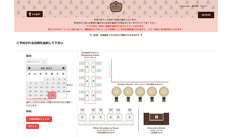 ※下記にてご紹介している「ご予約ページ」のデザインは若干変更になる場合がございます。