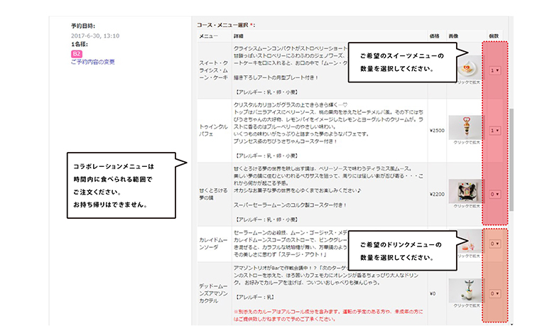 必ずWEB予約時にご希望のメニューを全てご注文ください!