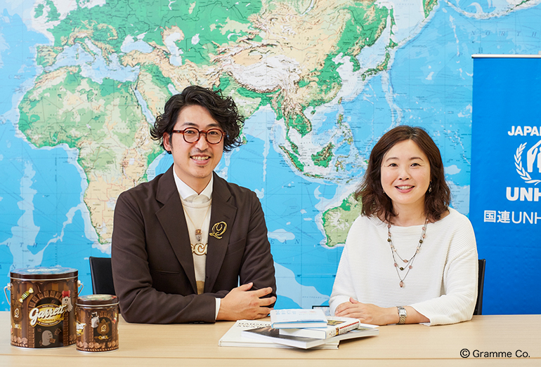 質問(以下Q):まずは、今回のコラボ缶の売上げの一部は国連UNHCR協会を通じてUNHCRが実施している、