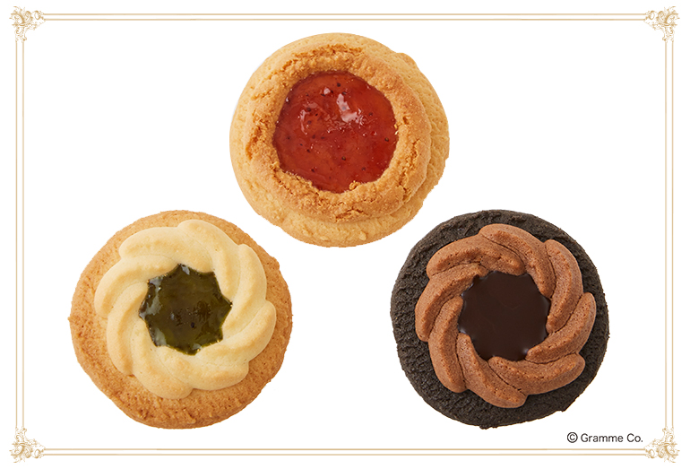 ストロベリー・キウイ・チョコレートの3種類のクッキーを閉じ込めました。
