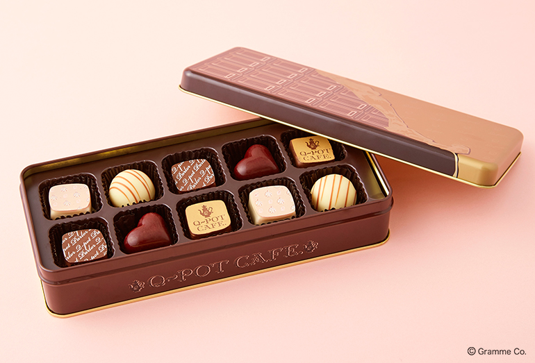 板チョコ柄のキュートな缶に並んだショコラは宝石のよう!