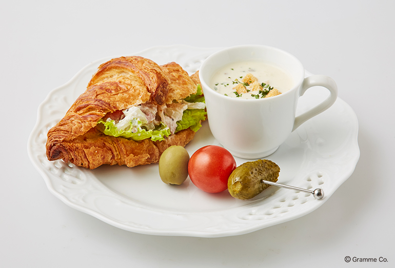 パストラミとリコッタチーズのサンドイッチ/マッシュルームのクリームスープ/ピンチョス