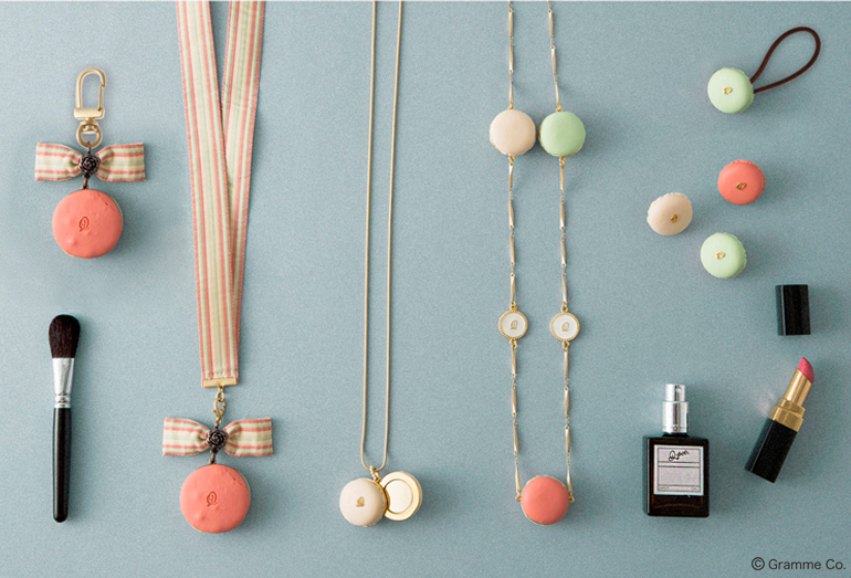 マカロンをスライドさせるとロケットになるネックレスなど表情豊かな“ジュテーム マカロン”シリーズ。