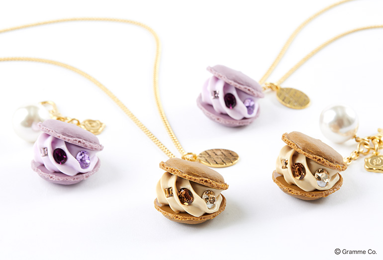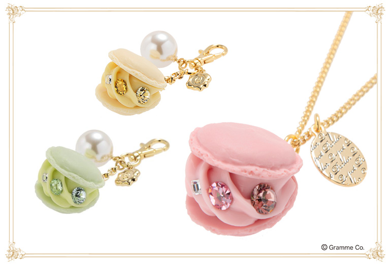 大粒のビジューを華やかにあしらった愛らしい“マカロン”は、
