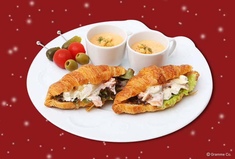 香ばしく焼きあげたサクサクのクロワッサンにサーモンとクリームチーズをサンド。