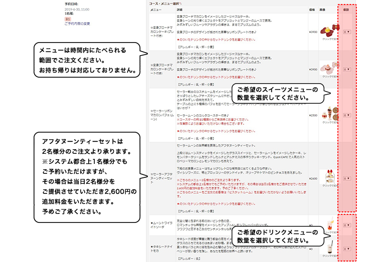Q-pot CAFE.のWEB予約は、事前にQ-pot. ONLINE SHOP(国内)で会員登録をいただくことをおすすめいたします。