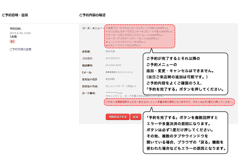 上記の理由によりご予約が正しく完了していない場合は、恐れ入りますがあらためてご予約手続きをお願いいたします。