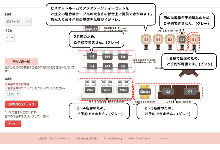 ※アフタヌーンティーセットは2名様よりご注文を承ります。ご注文される場合、選択可能であっても「B1~5」のお席はご選択いただかないようお願いいたします。