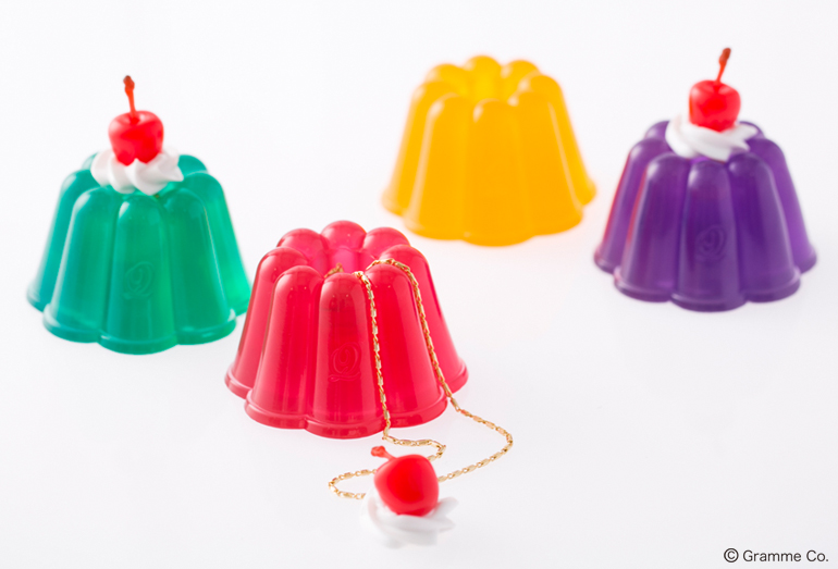 「プルプル」と揺れ動きそうなほどリアルな質感のゼリースタンドにトッピングすれば、カラフルなチェリーサンデーが完成!