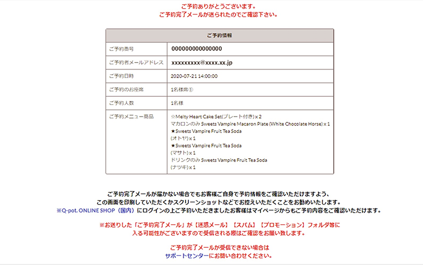 Q-pot CAFE.のWEB予約は、事前にQ-pot. ONLINE SHOP(国内)で会員登録いただくことをおすすめいたします。