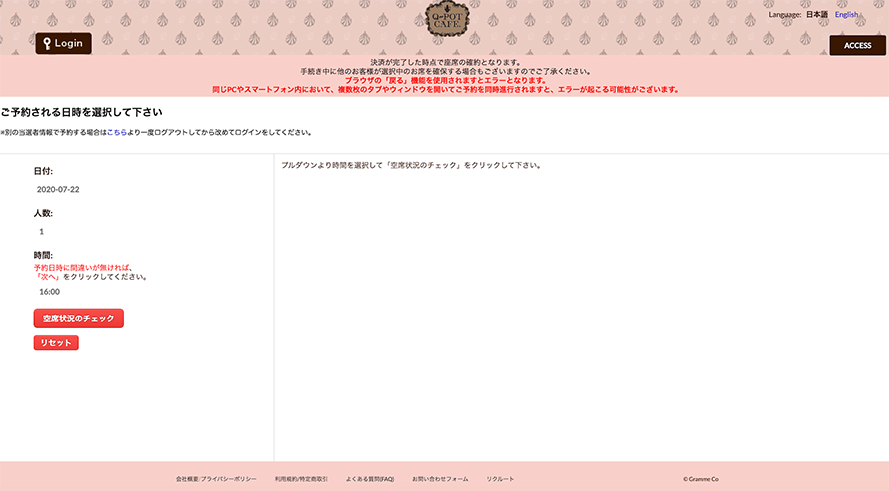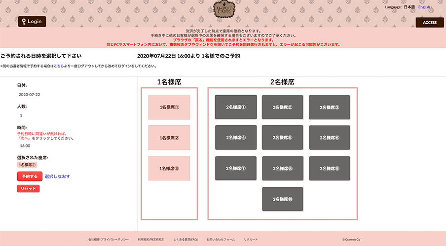 ※下記にてご紹介している「ご予約ページ」のデザインは若干変更になる場合がございます。