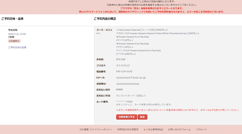また、万が一ご予約完了メールが届かない場合でも、お客様ご自身でご予約内容をご確認いただけますよう、