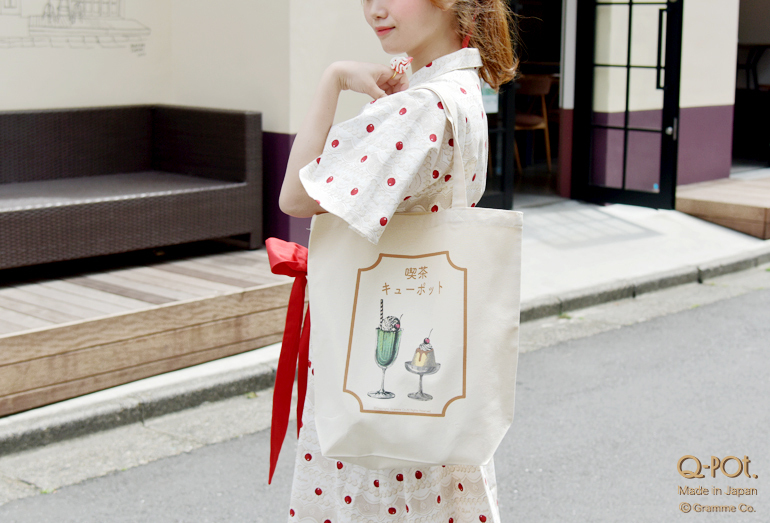 “プリン・ア・ラ・モード”がデザインされたトートバッグは、