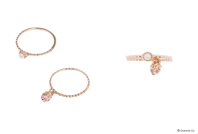 コンデンスミルク、ミルク、ストロベリーミルクのキュートな “メルト”リングで指先を飾って。