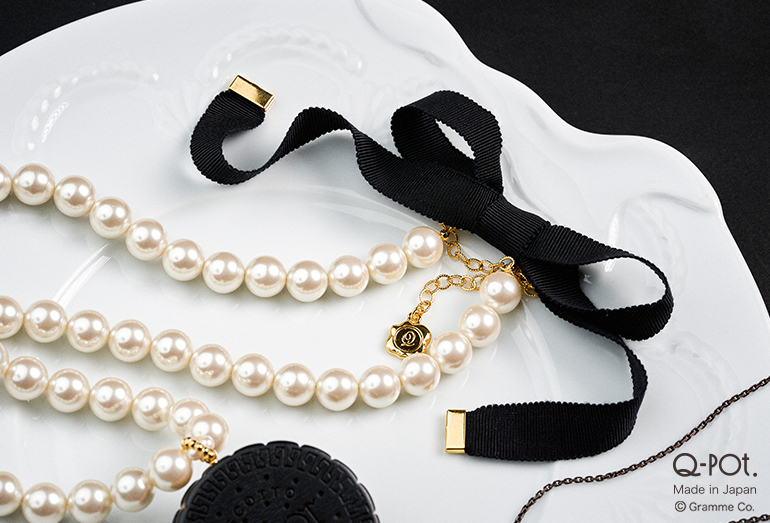 ※パールネックレスはQ-pot.表参道本店限定のお取り扱いです。