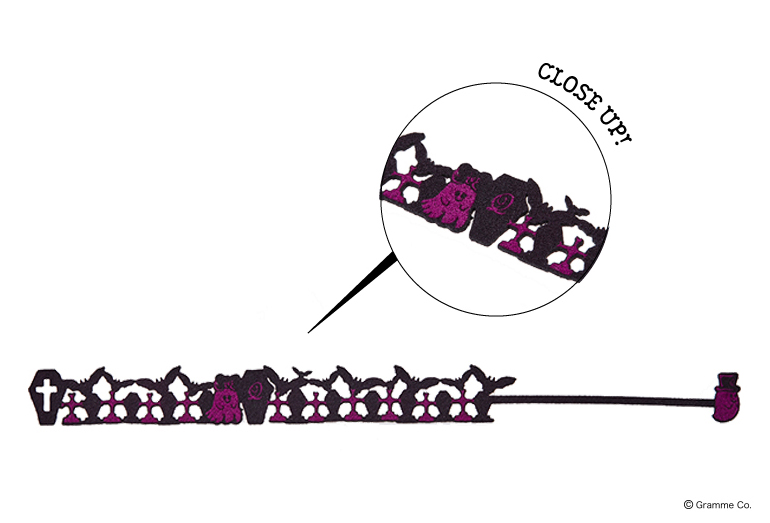 2015年10月3日(土)からQ-pot.直営各店にて税込10,800円以上お買い上げのお客様に、オリジナルブレスレットをプレゼント!パープル&ブラックカラーがおどろおどろしいハロウィンに相応しいブレスレット。