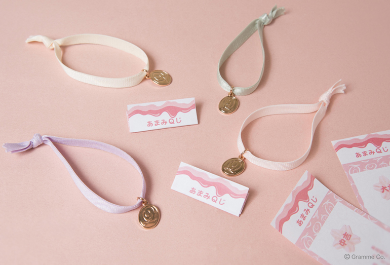 春らしいパステルカラーのミサンガとあま~いおみくじがセットになった