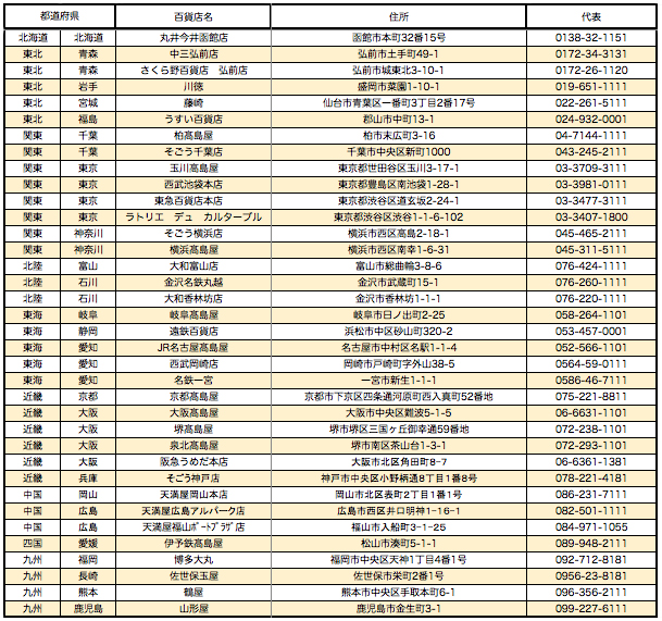 ※取扱い時期や取扱い商品、詳細につきましては各店舗にお問い合わせください。