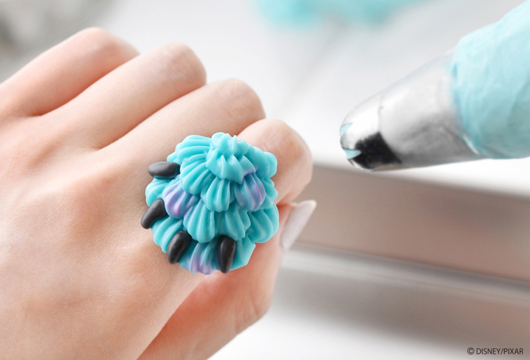 ヌメっとした質感を再現するため透明なグリーンを着色した“マイク”、
