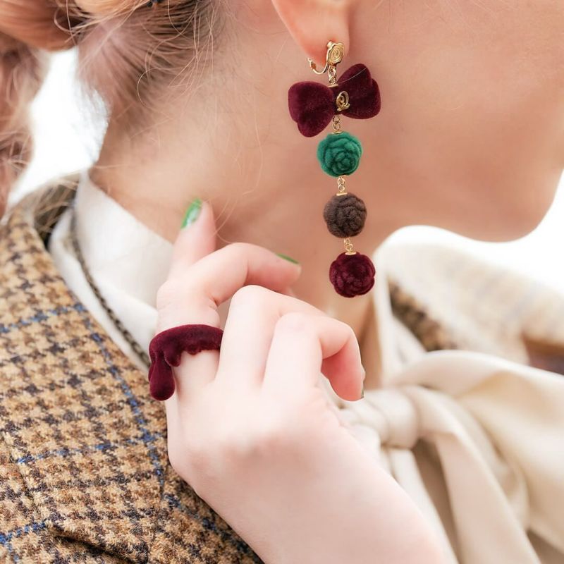 薔薇の花をつなぎ合わせたピアス&イヤリングは、
