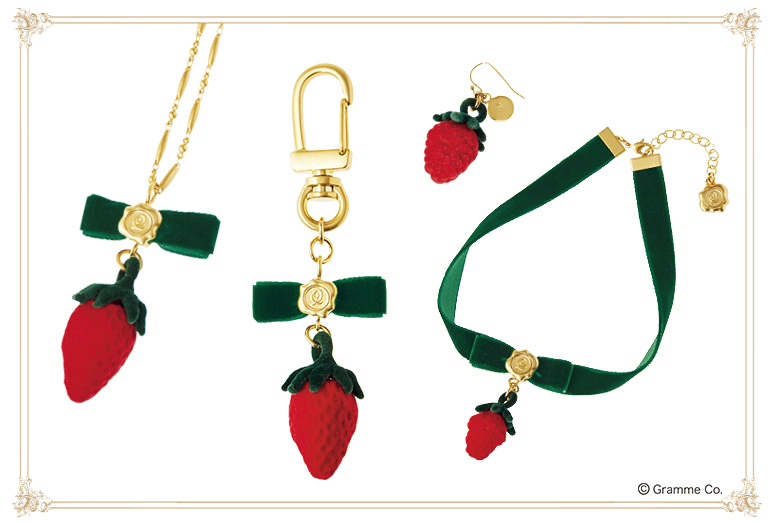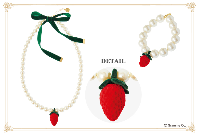 バッグチャーム 11,000円+税 / ベルベットストロベリーネックレス 16,800円+税