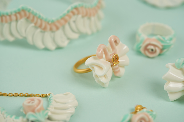 フリル状のクリームは軽快なステップのように。花や蝶々のクリームは休符のように。